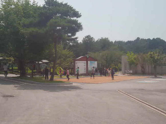 | ↑↑ 경천대 관광지 관리소 앞마당에 남녀노소 누구나 즐길 수 있는 기구를 갖춘 야외 놀이마당을 운영 |