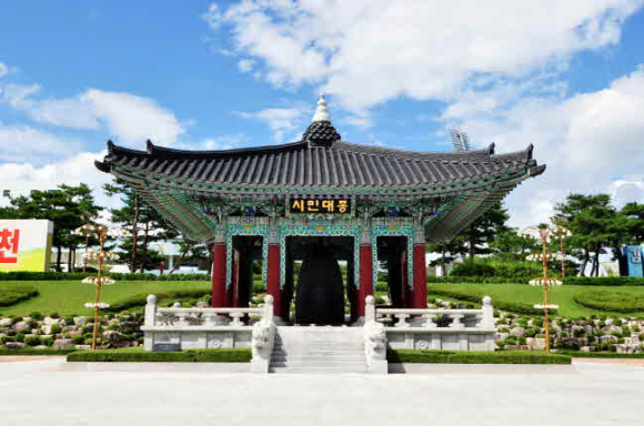 한편, 시민대종은 지난 1999. 10. 15일 김천시의 번영을 기원하는 14만 시민의 염원과 정성이 담긴 순수한 시민의 성금으로 건립되었다. 무게 5,000관(18.75톤)의 대종 명문은 향토출신 시조 시인 고 정완영 선생님이 썼다. 시민대종은 시민의 화합된 힘과 유구한 역사를 지닌 김천시의 위상을 보여주는 상징물로서 큰 의미를 지니고 있다. |