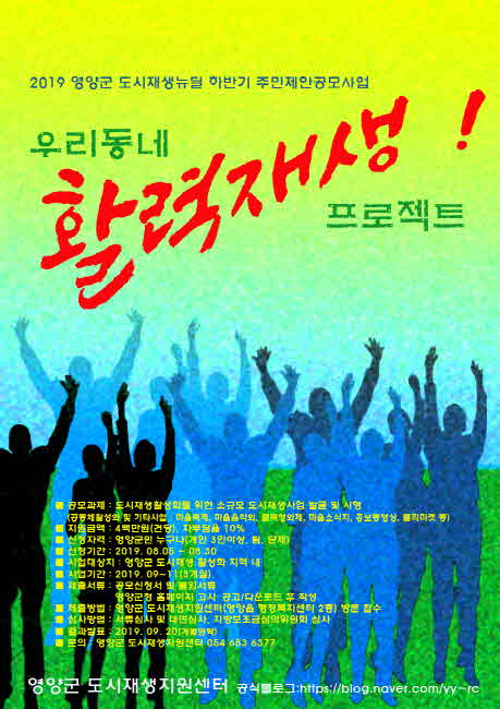 영양군(군수 오도창)은 주민들의 머릿속에만 머물던 아이디어를 밖으로 꺼내 직접 실행할 수 있도록 도와주는 도시재생 뉴딜 주민제안 공모사업 『우리동네 활력재생 프로젝트』를 진행한다고 밝혔다.