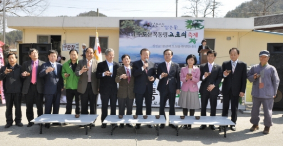 김천시 증산면 평촌리 김천옛날솜씨마을 야외공연장 일원이서 지난 13일 ‘제1회 수도산 목통령 고로쇠 축제’가 개최됐다. 이번행사는 증산면 황점, 수도리 촌부들이 주축이 된 고뢰쇠 작목반(반장 윤기홍,최석술)에서 주최하고 증산면사무소에서 후원해 이뤄졌다. 이날 행사에 300명 이상이 운집해 면 축제로는 성공적이었다는 평가다.