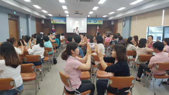 김천시보건소(소장 손태옥)는 8월 27일(화) 보건소 3층 회의실에서 보건소 직원을 대상으로 힐링 교육을 실시하였다. 권영복 강사의 “내 삶을 춤추게 하는 신바람 웃음”이란 주제로 지친 일상에서 벗어나 스트레스를 완화하고 즐겁게 소통하는 시간을 가졌다.