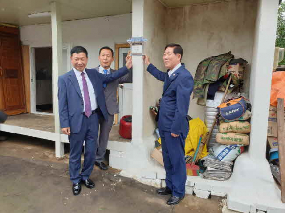 김천시(시장 김충섭)에서는 8월 28일 김종현 한국교통안전공단 교통안전본부장, 유선택 남김천로타리클럽 회장 등 후원자와 지역주민 등이 참석한 가운데 ‘함께 나누는 사랑’ 주거환경개선 5호점 현판식을 가졌다.