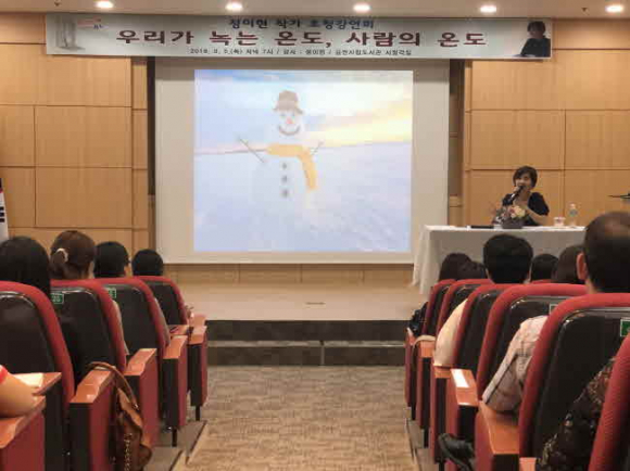 김천시립도서관은 독서의 달을 맞아 9월 5일 도서관 시청각실에서 100여명의 시민이 참석한 가운데 정이현 작가를 초청하여 「우리가 녹는 온도, 사람의 온도」라는 주제로 강연회를 개최하였다.
