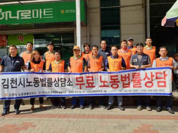 김천시(시장 김충섭)와 한국노총김천지부(의장 정갑성)는 9월 19일 김천농협하나로마트 앞에서 김천시 노동법률상담소 길거리 홍보 캠페인을 실시했다. 이번 캠페인에서는 최저임금법 및 근로계약, 임금체불관계 등에 대한 자료를 제공하고 무료 법률상담을 홍보했다.