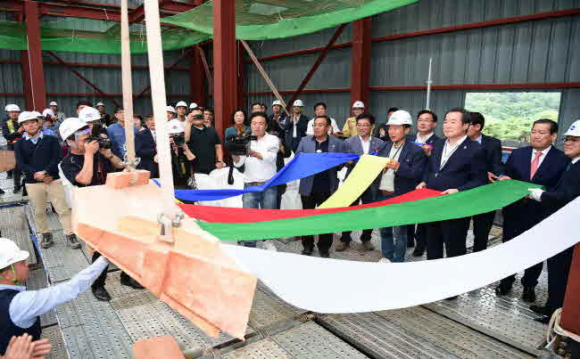 김천시(시장 김충섭)는 9월 23일(월) 하야로비공원내 평화의 탑 5층에서 지역 시의원 및 공사 관계자 등이 참석한 가운데 건축물의 준공까지 사업의 원활한 추진과 안전시공을 기원하는 상량식을 거행했다.