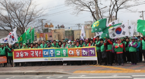 포항시새마을회(회장 박봉덕)는 22일 형산로터리에서 새마을회원 300명이 참석한 가운데 고유가 극복을 위한 대중교통이용하기 교통캠페인을 대대적으로 펼쳤다.