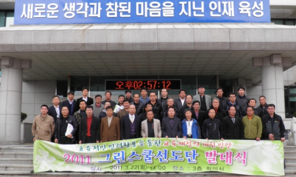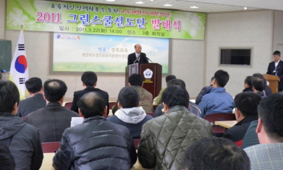 경상북도경주교육지원청은(교육장 임종성) 3월 22일 14:00 경주교육지원청 3층 회의실에서 공립 초·중학교의 시설물관리 담당자 등 50여명이 참석한 가운데 경상북도경주교육지원청 행정지원과 김유원 과장을 비롯해 행정지원담당과 함께 2011년 그린스쿨 선도단 발대식을 가졌다.