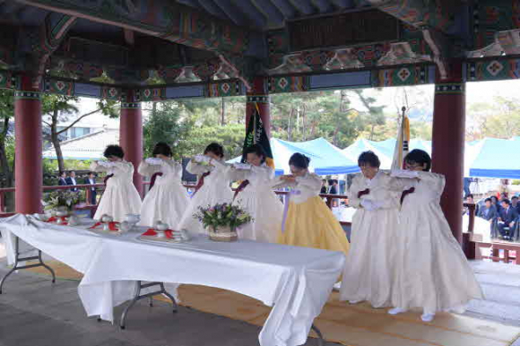올해 5회째를 맞이하는 찻자리는 영천의 3선현인 포은 정몽주 선생, 최무선 장군, 노계 박인로 선생에 대한 헌다례를 시작으로 17자리의 찻자리가 마련됐다. 특히 헌다례는 헌향, 헌화, 헌다로 구성된 우리 전통 문화가 고스란히 베어있는 아름다운 의식으로 선현에 대한 공경의 마음이 잘 드러났다.