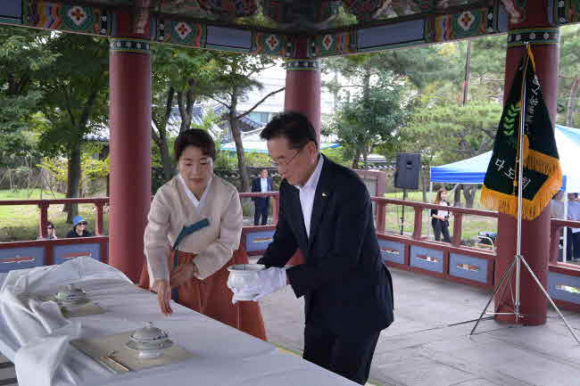 영천다도회(회장 신말자)는 27일 조양각에서 최기문 영천시장, 이만희 국회의원, 박종운 시의회의장을 비롯한 도·시의원 및 각 기관단체장, 시민 등 200여 명이 참석한 가운데 ‘시민을 위한 찻자리’ 행사를 가졌다.