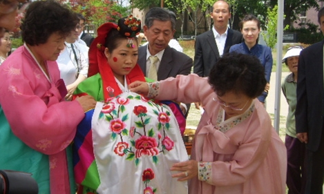 품격 높은 도시 풍요로운 시민, 행복 안동을 꿈꾸면서 문화관광을 지향하는 안동에서 사단법인 한국예절교육원 전통혼례단(단장 김행자)은 국내외의 관광객들을 대상으로 전통혼례식을 선보였다.