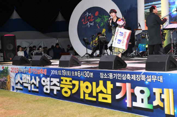 2019 소백산 영주풍기인삼 가요제가 19일 저녁 7시 축제장 특설무대에서 관광객과 주민이 함께한 가운데 영주 풍기의 밤을 물들였다.