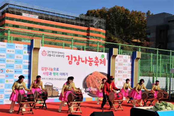 감문면 건강마을 위원들은 식전행사에 ‘아랑고고장구’ 공연을 펼쳐 많은 호응을 얻었으며 다른 봉사자들과 함께 김장 나눔 봉사활동을 실시하였다.