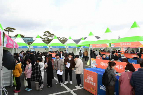 김천시(시장 김충섭)에서는 지역의 일자리 문제와 기업체가 안고 있는 구인난을 해소하기 위해 지난 11월 11일 김천종합스포츠타운 주차장에서 경상북도, 김천시, 구미고용노동지청에서 공동으로 주최하는 희망 UP, 취업 Go, 행복 Job는 「2019년 경북형 산학관 김천시 일자리 박람회」를 개최하였다.