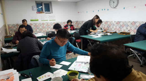 복지관 현관에 전시중인 엽서 작품은 아름다운 서체라는 뜻을 가진 캘리그라피로 짧은 교육기간에 열정을 다해 완성된 것이어서 주위의 부러움을 샀다. 전시는 12.11일부터 12.20일까지 10일간 할 예정이다.