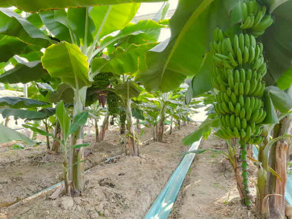 - 과학영농실증시험포에서 시험 재배 중 바나나 주렁주렁 열려