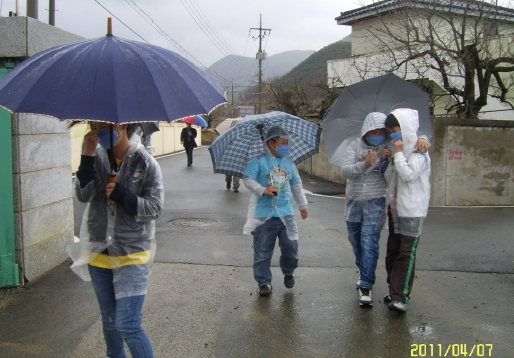 금천초등학교(교장 이완식)는 3월 6일 기상청예보에 따라 봄철 황사와 방사능비에 대비해 전교생 50명에게 황사마스크와 우비를 나누어 주어 착용하도록 했다.