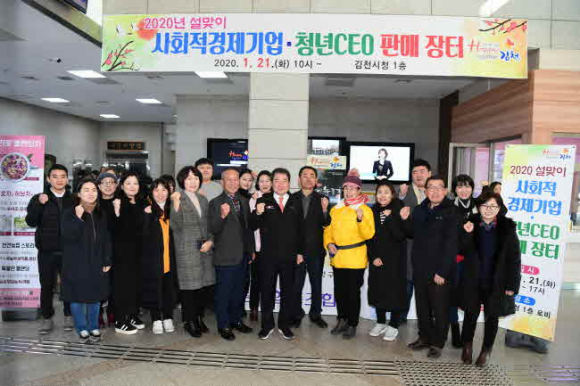 김천시(시장 김충섭)는 설 명절을 앞두고‘20. 1. 21(화)에 김천시청 1층 로비에서 사회적경제기업과 청년 CEO의 생산제품 판매장터를 운영하였다. 사회적경제기업과 청년 CEO는 각각 지역사회 내 고령자 및 장애인 등 취약계층에게 일자리 및 사회서비스를 제공하고 수익금 일부를 지역사회에 환원, 청년 창업 프로그램사업에 참여하여 성과를 이뤄내며 김천시 경제에 많은 이바지를 하고 있다.