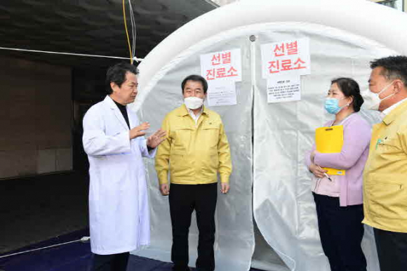 선별진료소는 신종코로나바이러스 감염증 의심환자를 사전에 선별하여 의료진이 의심환자로부터 노출되어 발생할 수 있는 전파위험을 차단하기 위해 설치된 공간으로, 김충섭 시장은 신종코로나바이러스 감염증이 확산되고 있는 이 시점에 보건기관과 의료기관이 합심해 가용자원을 총동원해 조기에 예방하고 대응해서 김천시민의 안전을 지켜야 한다고 강조했다.