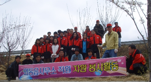 지난 16일 경주시 외동읍사무소 직원들은 시자체 세정종합평가에서 받은 시상금과 자부담금 300여만원으로 매화나무, 벚나무 등 40여주를 구입해 입실청사 주변도로에 매화꽃동산 조성을 위한 나무심기 봉사활동을 실시했다.