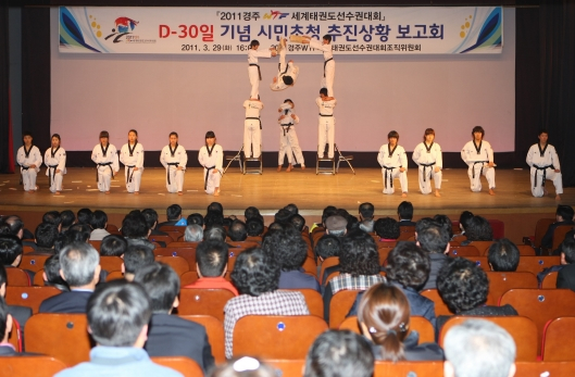아울러 오는 4월 28일에는 대회에 앞선 전야제행사로 ‘2011경주세계태권도선수권대회 성공개최 기원 한마당 시민 대축제’ 행사를 개최해 시민들과 함께하는 대회를 준비하고 있다. 행사는 6시 경주 축구공원 5, 6구장에서 열리며, 아이유, 박상민 등이 초청가수로 대회의 흥을 돋울 예정이다
