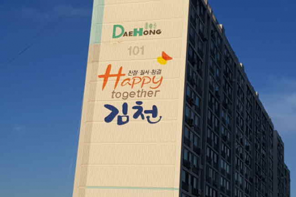 또한, 시민 동참분위기를 조성하기 위해 아파트 9개소의 벽면에 해피투게더 김천 운동 그래픽 작업을 시행하고, 공공건축물 25개소의 외벽을 활용한 홍보활동을 펼쳤다.