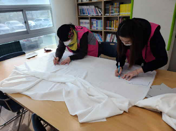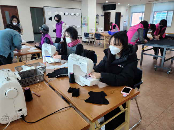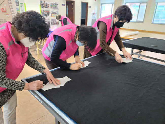 영덕 자원봉사자들이 취약계층을 위한 ‘사랑의 면 마스크’ 만들기에 두 팔을 걷어붙였다. 영덕읍 주민자치위원회 위원들과 자원봉사자 등 30여명의 자원봉사자들은 지난 6일부터 영덕문화체육센터 청소년문화의집에서 면 마스크 자체 제작을 시작했다. 고령인구가 30%가 넘는 지역의 특성상 일반 마스크 구입이 힘든 취약계층을 위해 자원봉사자들이 나선 것이다. 이들은 재봉틀과 원단 등의 작업도구에 맞춰 재단, 재봉 등 철저히 역할 분담을 하고 있다. 한쪽 그룹에서 재단 원본을 그리면, 다른 그룹에서는 재단을 자른다. 이후 11개의 재봉틀에서 마스크 재봉 작업이 이뤄진다. 그 다음은 고무줄을 연결한다. 이렇게 해서 하루 200여 장의 면 마스크가 제작된다. 면 마스크는 한 번 쓰고 버리는 것이 아니라 세탁 후에 또 사용할 수 있다. 평소 재단, 재봉 등의 익숙한 이들이 만든 면 마스크 품질은 일반 공장 제품과 비교해도 결코 떨어지지 않는다. 자원봉사자들의 열정에 맞춰 영덕군에서도 면, 고무줄 등 마스크 제작을 위한 재료 일부를 지원했다.