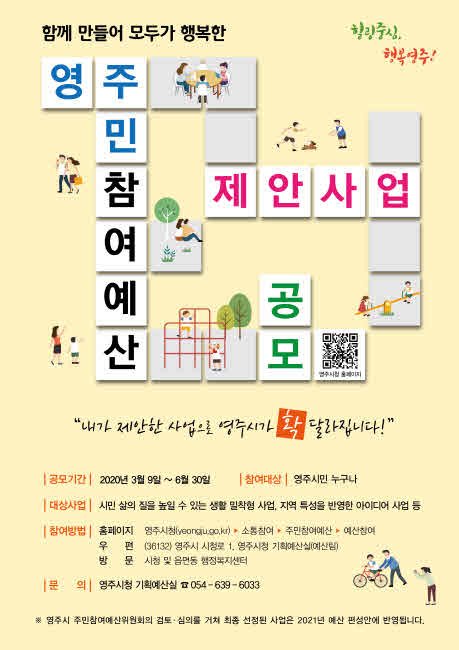 경북 영주시(시장 장욱현)는 지난 9일부터 2021년 주민참여예산 제안사업을 공모한다고 밝혔다.