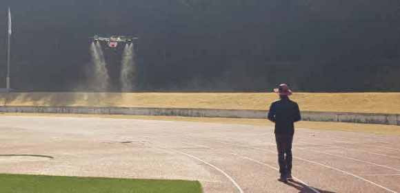 이번 농업용 병해충 방제 드론 투입으로 인력과 차량이 접근하기 어려운 광범위한 지역까지 방제가 가능해 소독사각지대 없이 보다 빈틈없는 코로나19 차단방역이 이루어질 것으로 기대한다. 임숙자 농업기술센터 소장은 “드론을 이용하여 코로나19 확산 방지 예방활동에 총력을 기울이겠다”고 밝혔다. |