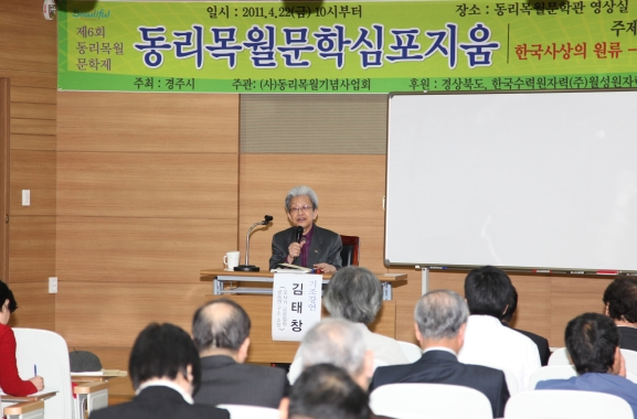 22일(금) 오전10시부터 실시한 동리목월문학심포지움은 한국사상의 뿌리를 찾는“한국사상의 원류 - 동학과 동방학”을 주제로 김태창(일본 오사카 공공철학⋅공동연구소장)이 기조강연을 하고, 제1주제 : 수운 선생의 생애와 사상 - 윤석산(한양대 교수) 제2주제 : 김동리문학에 나타난 동방사상 - 장윤익(전, 경주대 총장) 제3주제 : 동학의 수심정기와 주문의 의미 - 김용휘(고려대 교수) 제4주제 : 金凡父의 민족사상 정통성 세우기와 풍류정신 천명- 김정근(부산대 명예교수) 순으로 150여명이 참석한 가운데 진지한 발표와 토론이 진행되었다.