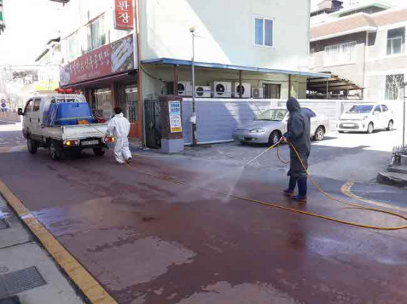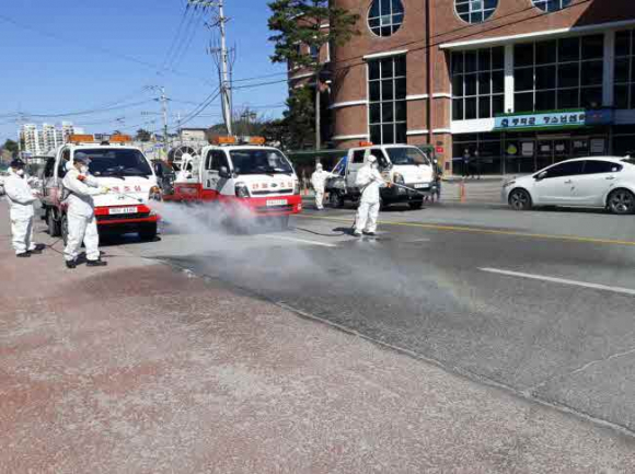 봉화군 봉화읍에서는 3월 20일(금) 오전 10시 지역 내 코로나19 발생에 따라 시가지 취약지에 대한 대대적인 방역활동을 실시했다. 이번 시가지 방역활동을 위해 봉화읍 찾아가는 보건복지팀과 봉화군 산림녹지과로 방역 소독반이 꾸려졌다. 봉화군 산림녹지과에서는 800L 물탱크를 실은 방역차량 2대, 운전원을 포함한 소독 인부 6명을 지원하였다. 봉화읍 방역 소독반은 효과적인 방역을 위하여 제 1·2구역으로 방역 구역을 나누었다. 제 1구역은 군청 앞 사거리에서 가래골 시티파크 아파트까지, 제 2구역은 삼계 회전 교차로에서 은어 화장실을 포함한 예배당골까지 지역민들의 활동량이 많은 공간 뿐 아니라 자칫 방역에 소홀할 수 있는 공간까지 봉화읍 시가지 전역을 찾아 방역차량 및 소독제 등을 이용하여 집중 방역했다. 평소 날짜별로 구역을 나누어 방역활동에 나섰던 봉화읍 방역 소독반이 이번에는 읍내 전역을 일제 방역함으로써 주민들의 불안감을 해소하는데 역점 추진하였다.