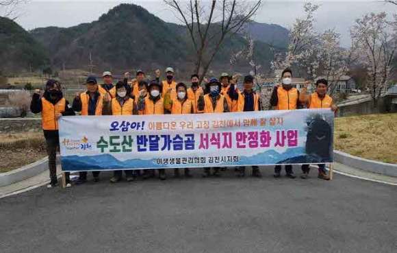 이삼근 환경위생과장은 “수도산에서 왕성한 활동을 하고 있는 반달가슴곰의 안전한 서식지 환경 조성을 위해 꾸준한 관리와 함께 반달가슴곰 캐릭터 개발에도 박차를 가하여 지역특산물에 접목시켜 농가 소득증대에도 노력 할 것”이라고 밝혔다. |