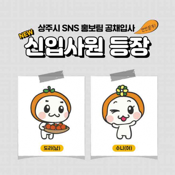 상주시는 최근 SNS(소셜 네트워크 서비스) 홍보용 캐릭터‘도리’와‘수니’를 제작해 상주시 공식 SNS에서 다양한 홍보 콘텐츠로 활용하고 있다.