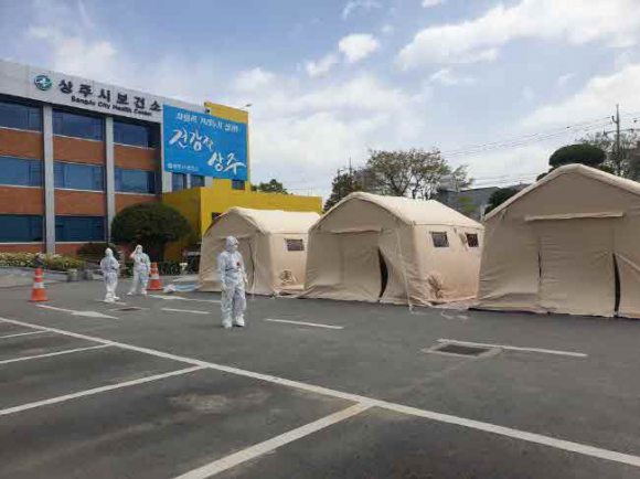 상주시보건소에서는 코로나19 장기화에 대비하기 위해 22일 보건소 마당에 선별진료소용 음압텐트 3개동을 설치했다. 이에 따라 코로나19 유증상자에 대한 진료, 역학조사, 검체 채취를 보다 안전하고 신속하게 할 수 있게 됐다.