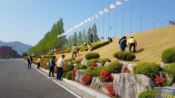 김천시(시장 김충섭) 스포츠산업과 및 원도심재생과 직원 60여명은 지난 4.29(수)일 김천종합스포츠타운 대청결 운동을 실시했다. 종합스포츠타운 클린(Clean) 운동은 대한민국에서 가장 친절하고 질서있고 청결한 도시를 만들겠다는 happy together 김천 운동을 실천하고, 코로나-19사태로 휴장에 들어갔던 공공체육시설의 재개장을 앞두고 종합스포츠타운을 찾을 시민과 대회참가 선수·임원·가족들에게 쾌적한 환경을 제공하기 위하여 평소 청소하기 힘든 취약지역을 중심으로 청결활동을 전개 하였다.