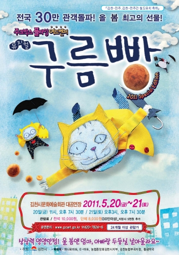 ▶가족뮤지컬=전국 30만 관객을 돌파한 주크박스 플라잉어드벤처 뮤지컬 ‘구름빵’이 5월20일(금) 11시, 오후7시30분, 5월21일(토) 오후 3시, 7시30분 문화예술회관 대공연장에 준비되어 어린이날을 맞이한 아이들에게 최고의 선물이 될 것으로 기대된다.(관람료 전석 10,000원)