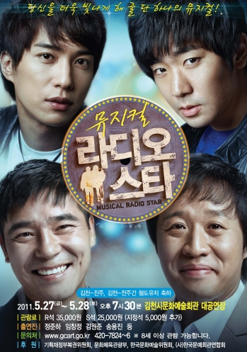 ▶기획뮤지컬=임창정, 송용진(27일), 정준하, 김원준(28일) 등 이 시대 최고의 만능엔터테이너들이 뭉친 ‘라디오스타’가 5월 27(금)~28(토)일 오후 7시30분 문화예술회관 대공연장에 막이 오르며 상반기 최고의 화려한 무대를 장식한다. (관람료 R석35,00원 S석25,000원)