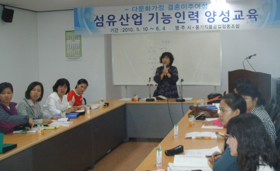 영주시는 다문화가정 결혼이주여성들의 안정적 일자리 제공과 기능인력양성을 위한 섬유산업 기능인력 양성교육 및 중소기업 인턴사원제를 실시한다.