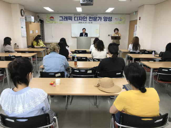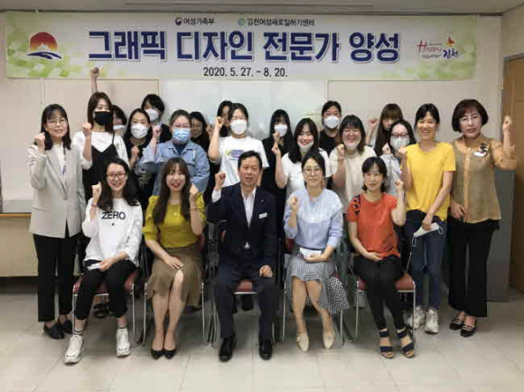 김천시 평생교육원에서 운영하는 여성새로일하기센터에서 2020. 5. 27.(수) 13:00, 교육생 20명이 참석한 가운데 직업교육 훈련 프로그램인「그래픽 디자인 전문가 양성」과정 개강식이 열렸다. 이번 과정은 5. 27~8. 20까지 총 38회, 150시간으로 운영되며, 그래픽 기술자격(GTQ) 1급 자격증을 취득할 수 있는 과정으로, 현대 미디어 형태에서 시각 디자인의 비중이 증가하는 만큼, 고학력 경력단절 여성의 취업에 디딤돌이 될 것으로 보인다. 그래픽 디자인 전문가 양성과정은 2020년 여성가족부 공모사업으로 선정되어 전액 국비가 지원되며, 수료 후에도 지속적인 상담 및 취업알선, 취업 후 사후관리 서비스를 지원할 예정이다.