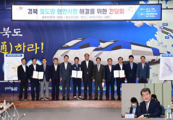 경상북도내 철도망 구축을 위한 이번 간담회는 중부내륙선(김천-문경) 철도건설, 중앙선(안동-영천) 복선화, 동해선(포항-강릉) 복선화를 위해 김천시를 비롯한 해당노선이 통과하는 11개 시장·군수가 참석하였다.