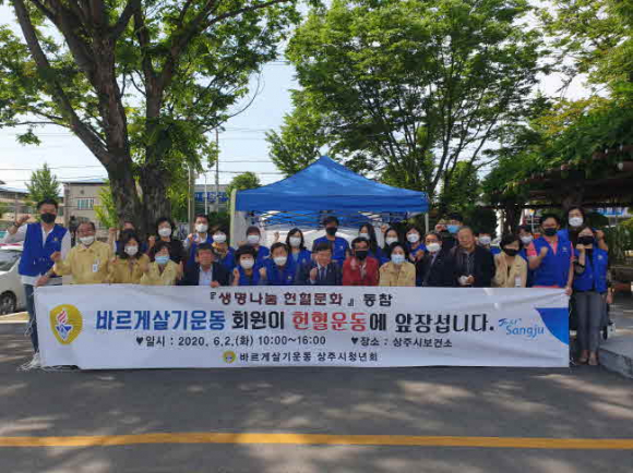 바르게살기운동 상주시협의회(회장 강정대)는 6월 2일 상주시 의회청사 전정에서 바르게살기 회원 50여명이 참석한 가운데 코로나19 사태 속 혈액 수급난 극복을 위해 헌혈 행사를 마련했다.