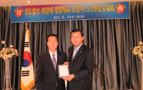 경도일보에서 11일 경도일보회장배 생활체육 포항스크린 골프대회를 마치고 대회 수익금 120만원을 포항시 300억 장학기금조성추진위원회에 기탁했다.