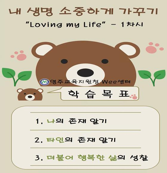 영주중학교(교장 김중식)는 1학년 학생들을 대상으로 6월 1일(월)부터 5일(금)까지 “내 생명 소중하게 가꾸기(Loving my life)”를 주제로 원격 생명존중교육을 실시한다. 이번 교육은 코로나19의 지역사회 감염 위험성이 완전히 사라지지 않는 현 상황에서 학생들의 정신건강을 면밀히 살피고, 더불어 생명존중 및 생명 사랑을 목표로 한 사전예방프로그램으로 원격으로 실시하고 있다. 해당 교육자료는 영주교육지원청 Wee센터에서 “Wee(우리)와 함께하는 온라인 생명존중교육”의 일환으로 자체 개발하여 관내 학교로 배포 및 활용할 수 있도록 제공함으로써 학교 현장의 교원 업무 경감에도 큰 도움이 되고 있다. 본 콘텐츠 내용으로는 ‘나의 존재를 알기’, ‘타인의 존재를 알아가기’, ‘더불어 행복한 삶을 성찰하기’로 나누어 삶과 죽음에 대한 올바른 이해와 사회성 기술을 높일 수 있도록 마련되어 학생들의 생명존중의식을 고취할 수 있을 것으로 기대한다.