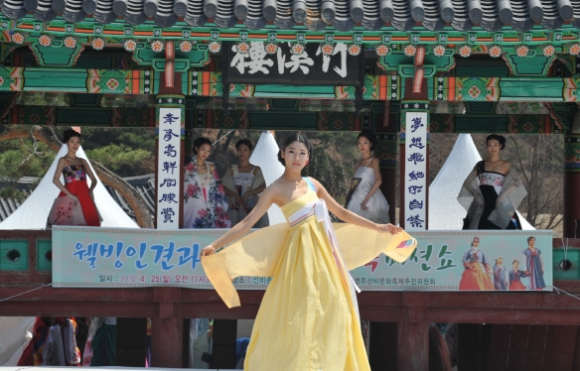 전문모델이 입고 등장하게 될 한복은 지역의 한복연구가인 권해숙씨가 디자인한 궁중복, 생활한복, 어린이한복, 한복드레스 등 아주 다채롭게 마련되는데, 이 모든 의상들은 지역의 특산명품인 풍기인견으로 만들어졌으며, 총연출은 대경대학교 모델학과 신상원 교수가 맡았다. |