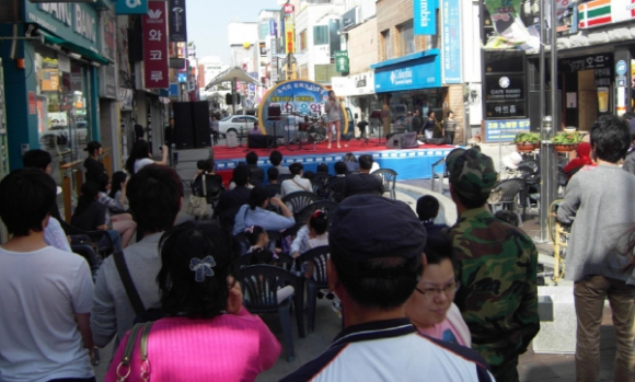 “포항시민과 함께하는 실개천 음악회”가 14일 중앙상가 실개천에서 시민들과 청소년들이 모인 가운데 포항시시설관리공단 주최로 개최됐다.