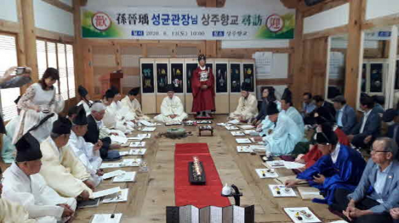 손진우 성균관장은 "오랜 역사를 지닌 대설위 상주향교에서 유림들과 이런 자리를 갖게 되어 반갑다. 성균관장으로서 유림의 화합과 유교발전을 위해 노력하겠다."고 말했다.