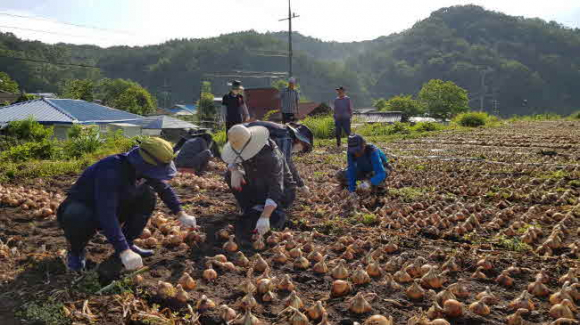 김천시 지례면(면장 김종국)은 지난 19일 관내 양파 재배농가를 방문해 농촌일손돕기를 실시했다. 이번 농촌일손돕기는 코로나-19의 장기화 인해 일손부족으로 어려움을 겪고 있는 주민들을 돕기위해 마을별 신청을 받은 후 가장 고령의 농가를 선정하여 면사무소 직원들이 양파 수확을 지원했다. 해당 농가주는 “코로나-19 사태로 인해 외국인 근로자의 일손이 턱없이 부족해 걱정이 많았는데 면사무소에서 도와주니 정말 큰 힘이 되었다.”고 밝혔다. 김종국 지례면장은 “올해는 코로나-19의 여파로 영농철에 일손이 부족한 상황에 이번 농촌일손돕기가 농가에 자그마한 힘이라도 됐으면 좋겠다. 재난지원금 지급으로 인해 육류 소비량이 증가했으니 김천시민 모두가 몸에 좋은 지례 양파와 흑돼지를 많이 먹고 건강하게 코로나-19를 함께 이겨내자.”고 말했다.