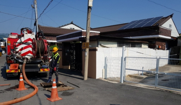 영덕군이 우수기 대비 하수도 시설물 준설사업을 시행하고 있다. 재해방지 및 악취 저감이 목적이며, 관내 상습침수구역 및 9개 읍·면 준설 요청지와 우수관로, 맨홀 등에서 실시하고 있다. 영덕군은 매년 우수기를 대비해 하수도 준설사업을 시행했으며, 올해 하수도 시설물 준설사업 예산은 총 1억원이다. 영덕군은 이달 말까지 관내 하수관로 7.01km, 하수도 시설물 34개소 토사 및 이물질 863.8ton에 대해 준설 작업을 완료한다는 계획이다. 이후 침수취약지역 및 상습 배수불량 구간을 중심으로 상시순환점검 및 이물질 제거활동 등 재해예방활동을 펼칠 예정이며, 지난달 12일에는 관내 배수펌프장 3개소(영덕읍 우곡, 강구면 강구, 강구면 오포)를 대상으로 시설 일제 점검 및 펌프장 가동훈련도 마쳤다. 이밖에도 지난 15일에는 중앙 및 도 합동 배수펌프장 가동훈련 및 점검을 통해 배수펌프장 실제 가동, 비상 응소를 시행하는 등 우천 시 비상상황을 대비해 만전을 기하고 있다.