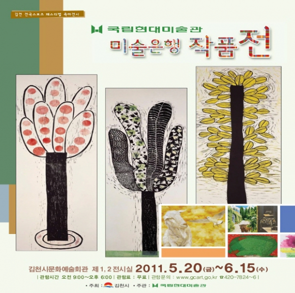 김천시는 5월 김천전국스포츠페스티벌을 축하하며 김천을 찾는 손님들과 시민들에게 다양한 볼거리를 제공하기 위해 김천문화예술회관에서 『국립현대미술관 미술은행 작품전』을 개최한다.