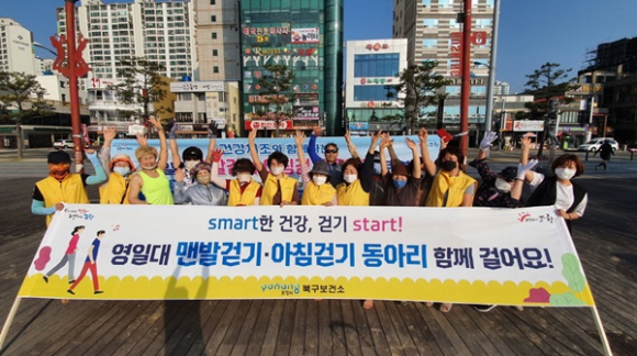 포항시 북구보건소에서 시민들의 생활 속 걷기 실천을 위해 운영하고 있는 영일대해수욕장 아침걷기 동아리가 시민들로부터 큰 호응을 얻고 있다.
