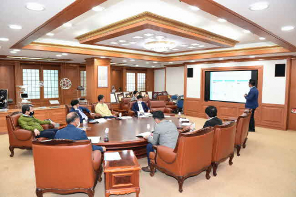 김천시(시장 김충섭)은 7월 20일(월) 시청 접견실에서 김한규 평화시장 상인회장, 김세호 평화로상가협의회장 등이 참석한 가운데「김천 원도심 상권르네상스 종합계획 수립 연구용역」중간 보고회를 개최했다.